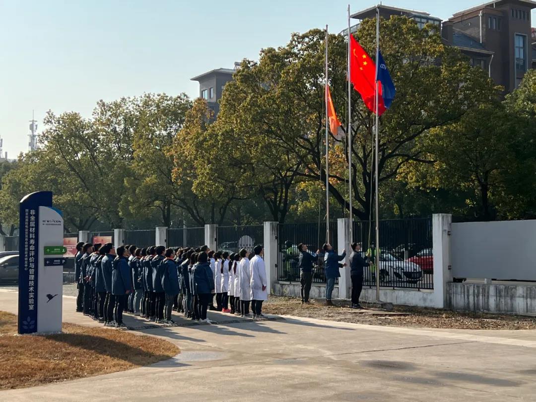 ▲中廣核核技術(shù)發(fā)展股份有限公司非金屬材料壽命評(píng)價(jià)與管理技術(shù)實(shí)驗(yàn)室舉行升旗儀式