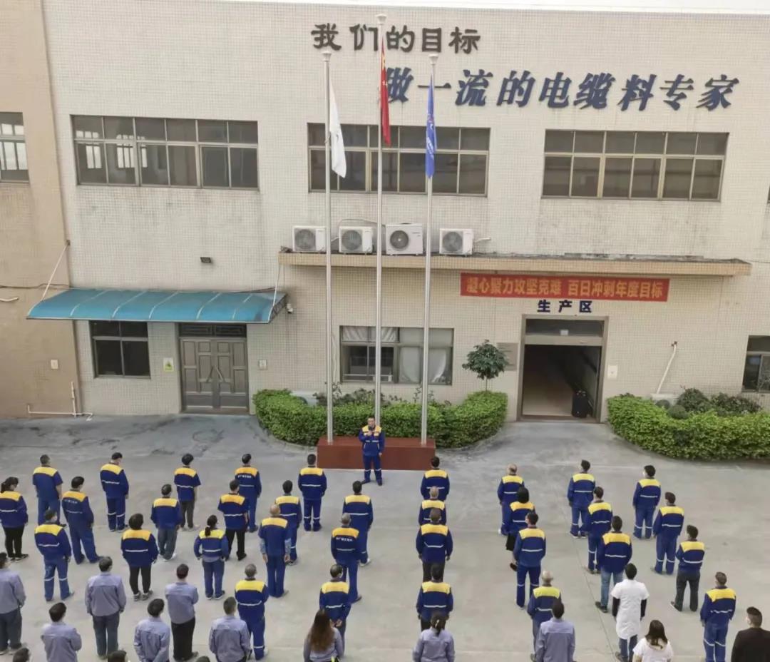 ▲中廣核核技術(shù)發(fā)展股份有限公司所屬?gòu)V東中山高聚物公司舉行升旗儀式