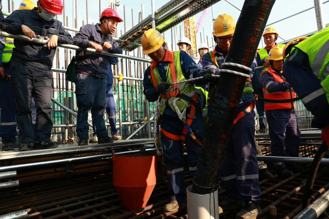 此次澆筑采用斜面分層澆筑方法,澆筑方量約4100立方米,預(yù)計(jì)澆筑時(shí)長約40小時(shí),是常規(guī)島筏基中澆筑面積最大的一塊。